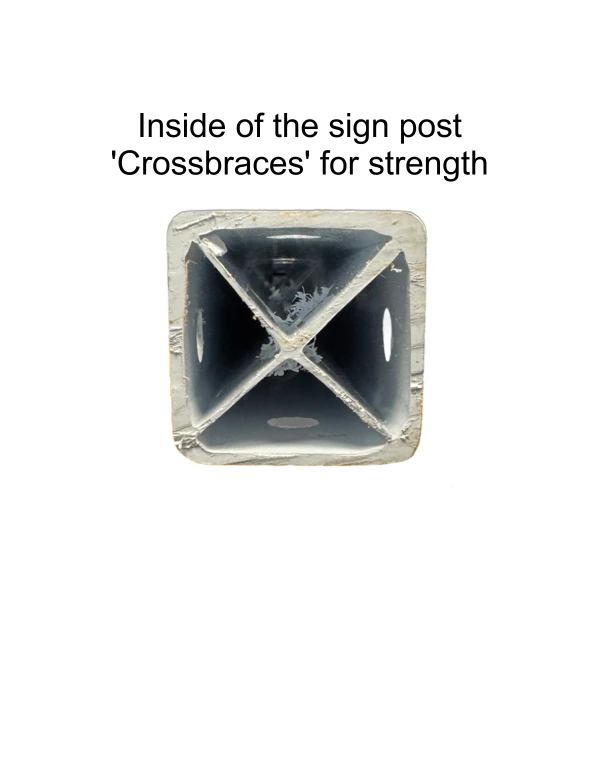 - Square Plastic Post: The 60" or 72" white plastic square post features reinforcing internal crossbars for enhanced durability and stability, preventing sign twisting—a common issue with round posts.