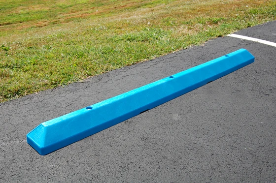 Engineered for added strength at lower weight, the 6-foot commercial plastic parking block can be carried and installed by a single person. LEED qualified and made from injection-molded, 100 percent recycled HDPE plastic, this parking stop resists tire scuffing and natural elements. The color is molded throughout – there's no upkeep required. Great for shopping mall parking lots, apartment and condo complexes, and commercial grounds. Comes in high-visibility yellow, traditional gray, white and handicapped blue. Has recessed bolt holes and mounting hardware is included.