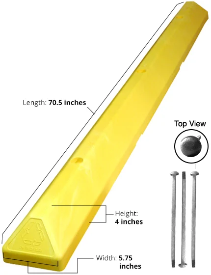 6' Yellow Recycled Plastic 'Commercial' Parking Block w/three 12" Galvanized Steel Spikes
