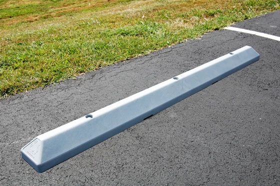 Engineered for added strength at lower weight, the 6-foot commercial plastic parking block can be carried and installed by a single person. LEED qualified and made from injection-molded, 100 percent recycled HDPE plastic, this parking stop resists tire scuffing and natural elements. The color is molded throughout – there's no upkeep required. Great for shopping mall parking lots, apartment and condo complexes, and commercial grounds. Comes in high-visibility yellow, traditional gray, white and handicapped blue. Has recessed bolt holes and mounting hardware is included.