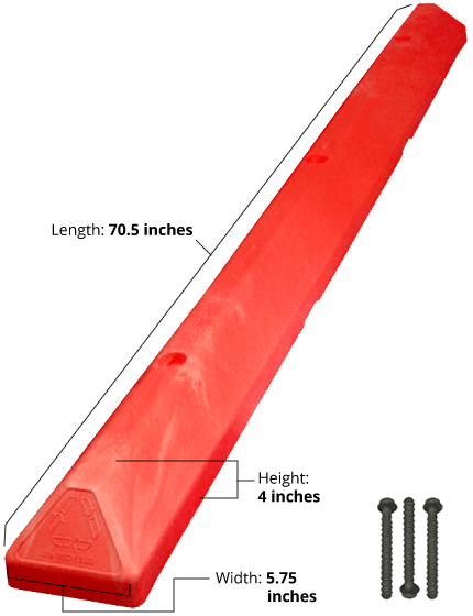 6' Red 'Commercial' Parking Block with three (3) Wedge-Bolt fasteners for Concrete
