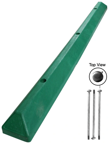 Engineered for added strength at lower weight, the 6-foot commercial plastic parking block can be carried and installed by a single person. LEED qualified and made from injection-molded, 100 percent recycled HDPE plastic, this parking stop resists tire scuffing and natural elements. The color is molded throughout – there's no upkeep required. Great for shopping mall parking lots, apartment and condo complexes, and commercial grounds. Comes in high-visibility yellow, traditional gray, white and handicapped blue. Has recessed bolt holes and mounting hardware is included.