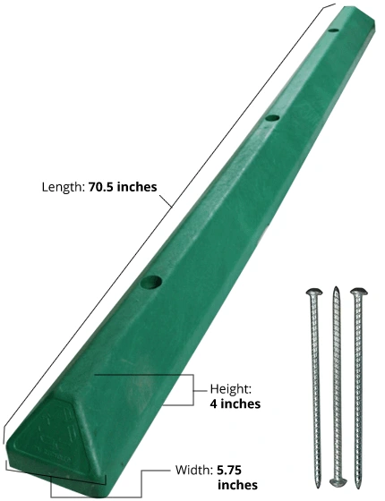 Engineered for added strength at lower weight, the 6-foot commercial plastic parking block can be carried and installed by a single person. LEED qualified and made from injection-molded, 100 percent recycled HDPE plastic, this parking stop resists tire scuffing and natural elements. The color is molded throughout – there's no upkeep required. Great for shopping mall parking lots, apartment and condo complexes, and commercial grounds. Comes in high-visibility yellow, traditional gray, white and handicapped blue. Has recessed bolt holes and mounting hardware is included.