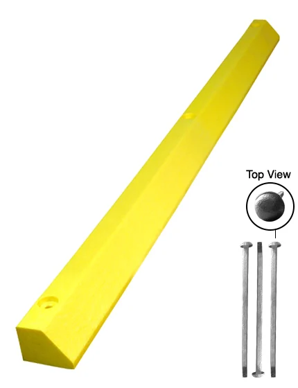 6' Yellow, Economy Solid Recycled Plastic Parking Block w/12" Galvanized Steel Spikes