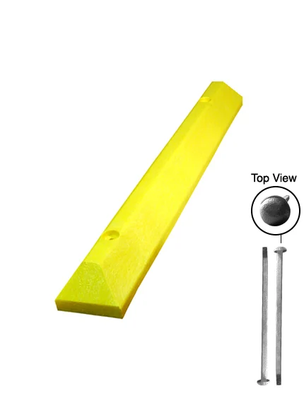 4' Yellow, Heavy-Duty Solid Recycled Plastic Parking Block w/12" Galvanized Steel Spikes