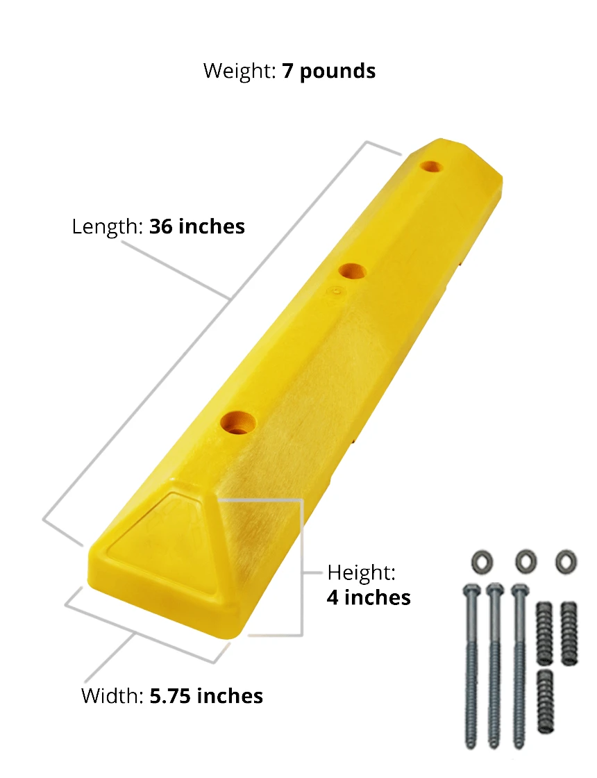 Built to withstand tire scuffing, UV exposure, moisture, and everyday wear, the color is molded throughout the block—so there’s no fading, peeling, or repainting required. Recessed bolt holes create a clean, finished appearance, and mounting hardware is included for quick installation.