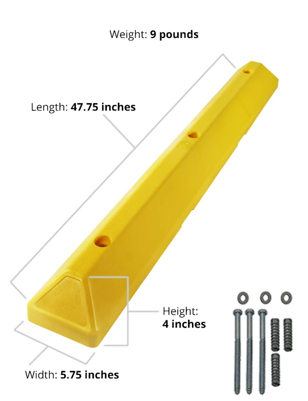 Designed to resist tire scuffing, UV exposure, moisture, and harsh outdoor conditions, the color is molded throughout the block—so there’s no peeling, fading, or repainting required. Recessed bolt holes provide a clean, finished appearance once installed, and mounting hardware is included for faster installation.