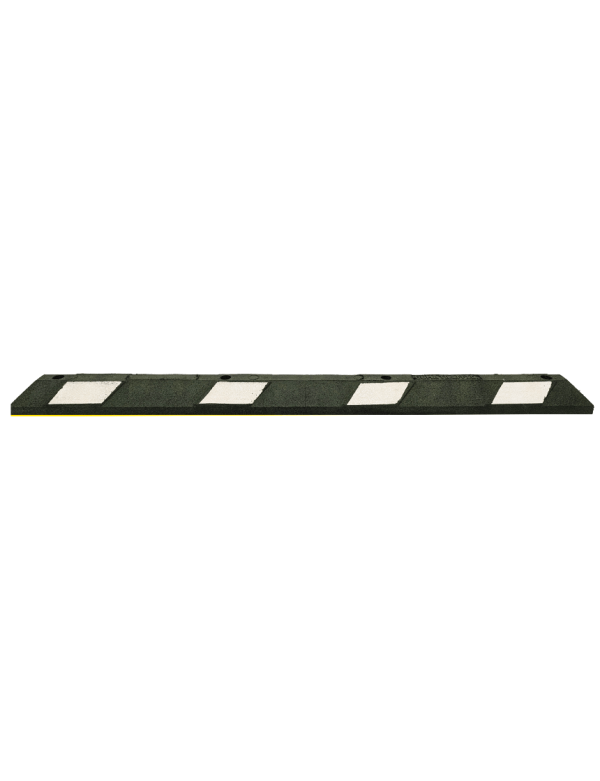 Pre-drilled holes make installation quick and secure, while the slight flexibility of the rubber allows the block to conform to uneven surfaces such as asphalt, gravel, or concrete. Each GUMA wheel stop is equipped with molded, highly reflective tape—available in yellow or white—that enhances night-time visibility and improves both driver guidance and pedestrian safety. These parking curbs are resistant to UV light, extreme weather conditions, road salt, oil, and gas, these parking blocks maintain their structural integrity and visibility despite constant exposure to harsh environments.