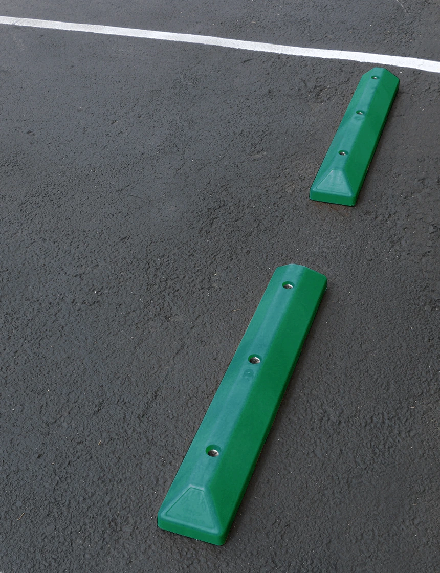Engineered for strength while keeping weight to a minimum, this 3-foot commercial plastic parking block can be easily carried and installed by a single person. It is manufactured from 100% recycled, injection-molded HDPE plastic and is LEED qualified, making it a durable and environmentally responsible choice.