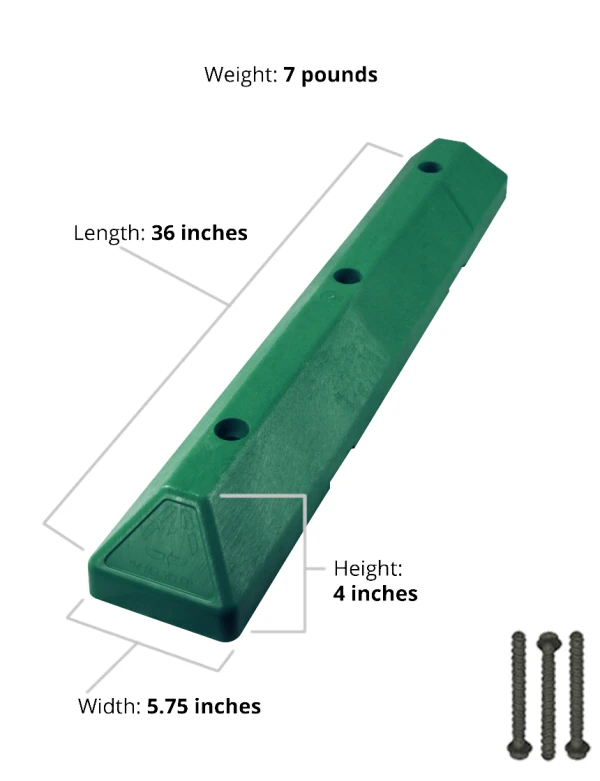 3' Ev Green Commercial Parking Block w/ Three Wedge-Bolt Fasteners For Concrete
