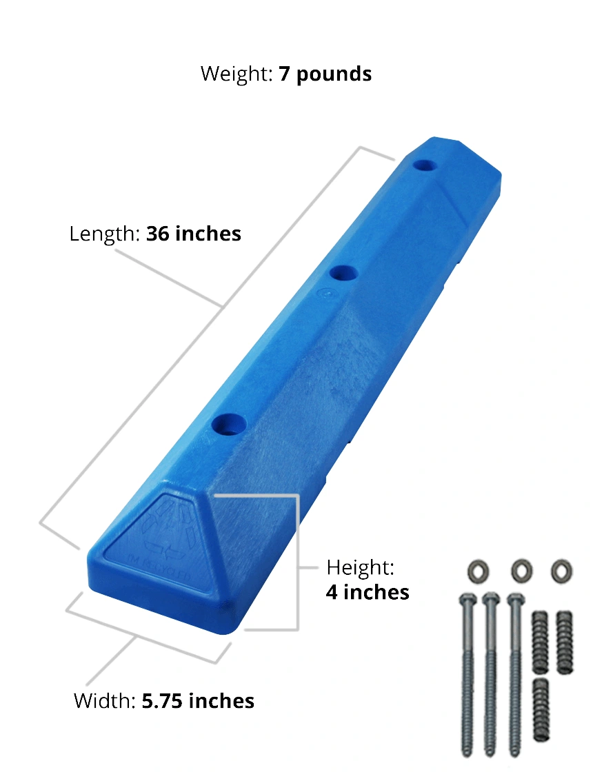Built to withstand tire scuffing, UV exposure, moisture, and everyday wear, the color is molded throughout the block—so there’s no fading, peeling, or repainting required. Recessed bolt holes create a clean, finished appearance, and mounting hardware is included for quick installation.