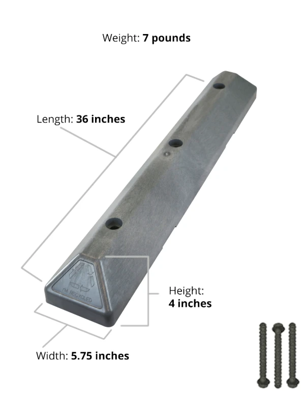Built to withstand tire scuffing, UV exposure, moisture, and everyday wear, the color is molded throughout the block—so there’s no fading, peeling, or repainting required. Recessed bolt holes create a clean, finished appearance, and mounting hardware is included for quick installation.