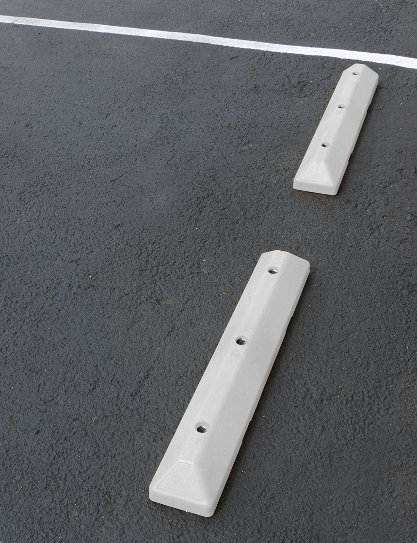 Engineered for strength while keeping weight to a minimum, this 3-foot commercial plastic parking block can be easily carried and installed by a single person. It is manufactured from 100% recycled, injection-molded HDPE plastic and is LEED qualified, making it a durable and environmentally responsible choice.