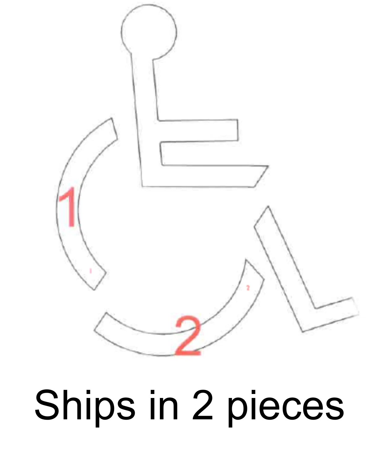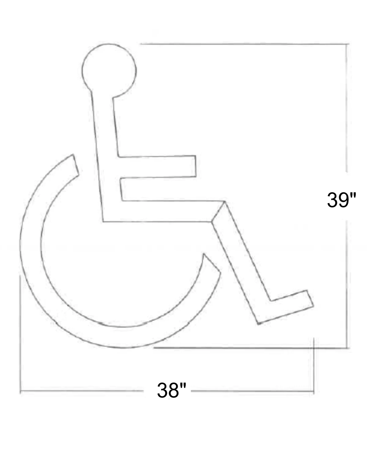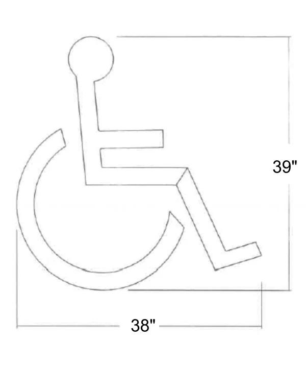 ADA Compliant Design: Features a 39" tall x 38" wide white wheelchair symbol.