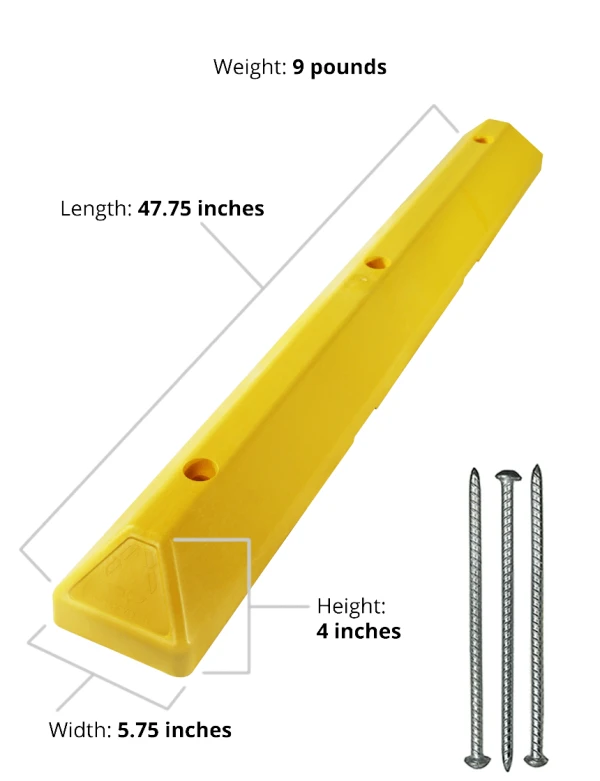 4' Yellow Recycled Plastic Commercial Parking Block w/ 14" Galvanized Rebar Steel Spike Fasteners