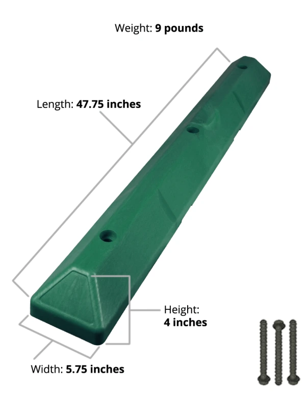 Designed to resist tire scuffing, UV exposure, moisture, and harsh outdoor conditions, the color is molded throughout the block—so there’s no peeling, fading, or repainting required. Recessed bolt holes provide a clean, finished appearance once installed, and mounting hardware is included for faster installation.