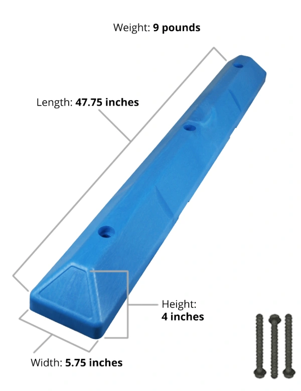 Designed to resist tire scuffing, UV exposure, moisture, and harsh outdoor conditions, the color is molded throughout the block—so there’s no peeling, fading, or repainting required. Recessed bolt holes provide a clean, finished appearance once installed, and mounting hardware is included for faster installation.