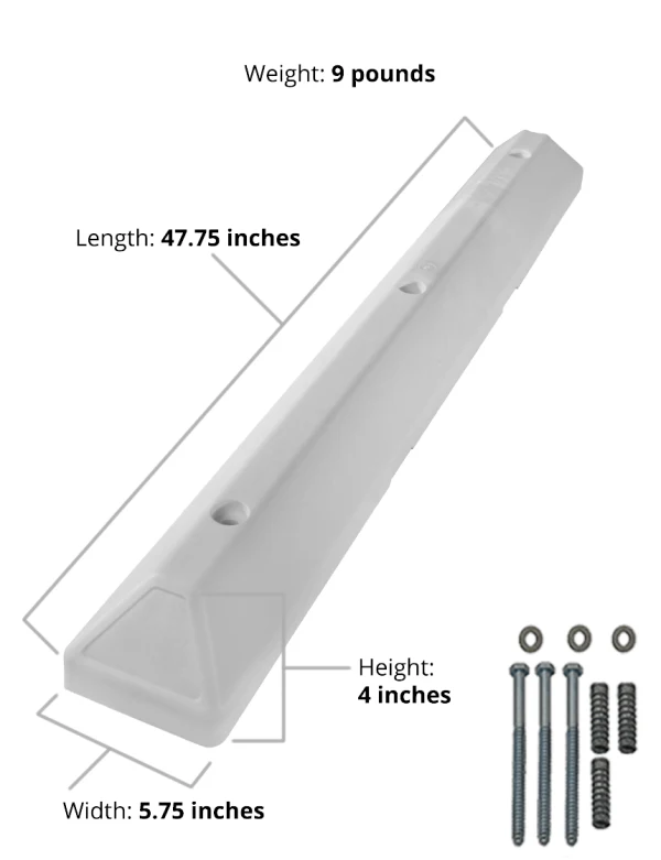 4' White Commercial Parking Block w/ 8" Lags & Anchor Fasteners