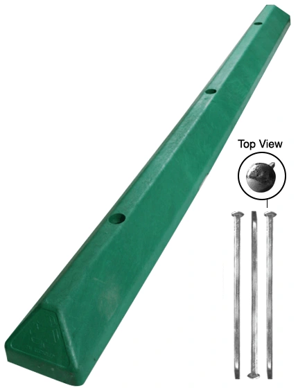 6' Green EV Recycled Plastic 'Commercial' Parking Block w/three 18" Galvanized Steel Spikes