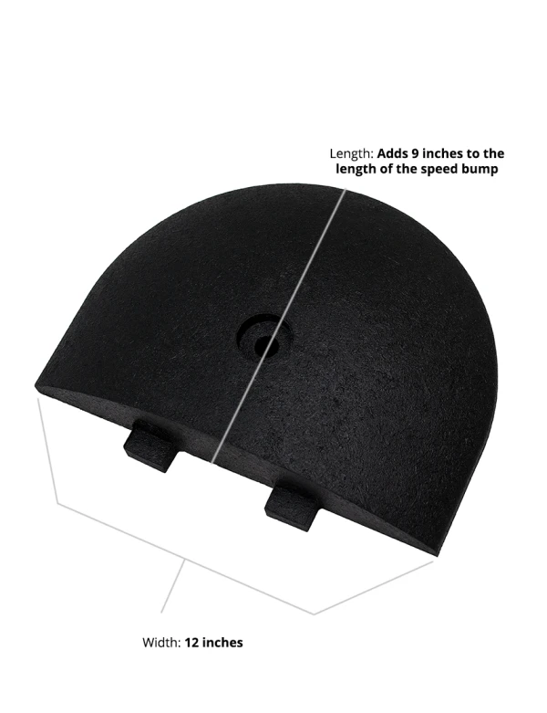Extend the length of the Alley speed bump by adding a rounded cap to either/both end(s). Provides a finished, professional look while minimizing vehicle ware and tear. Each cap has a pre-sunk bolt hole for simple installation.