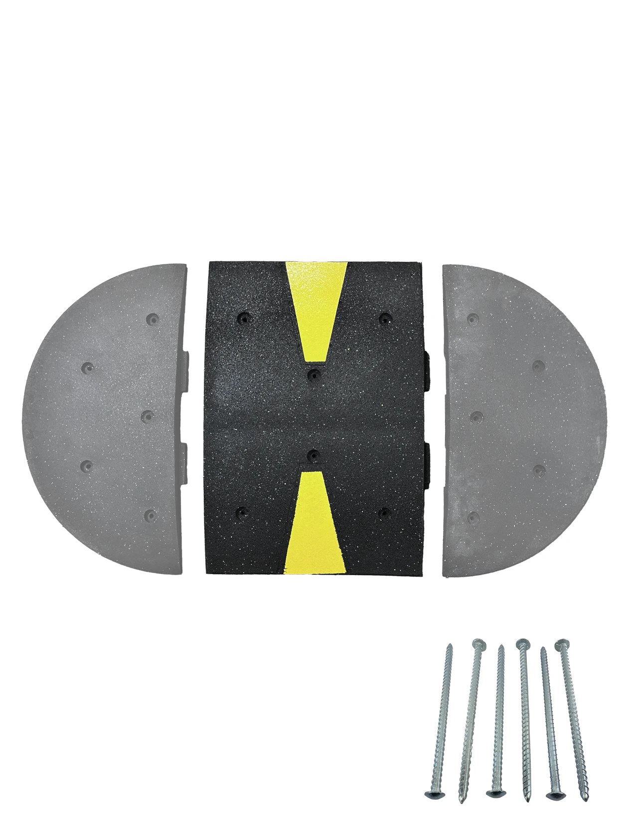 Constructed from 100% recycled rubber, these speed humps are built for durability and long-term performance, making them an eco-friendly choice for traffic control and road safety.