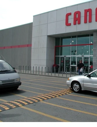 Rubber speed humps slow traffic to 10-15 mph and are ideal for parks, school zones, hospitals, and retirement communities. The modular units lock together, creating a uniform surface fit to the road’s width. Also legal for authorized use on public roads. LEED approved – made from solid 100% recycled tires.