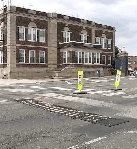 Rubber speed humps slow traffic to 10-15 mph and are ideal for parks, school zones, hospitals, and retirement communities. The modular units lock together, creating a uniform surface fit to the road’s width. Also legal for authorized use on public roads. LEED approved – made from solid 100% recycled tires.