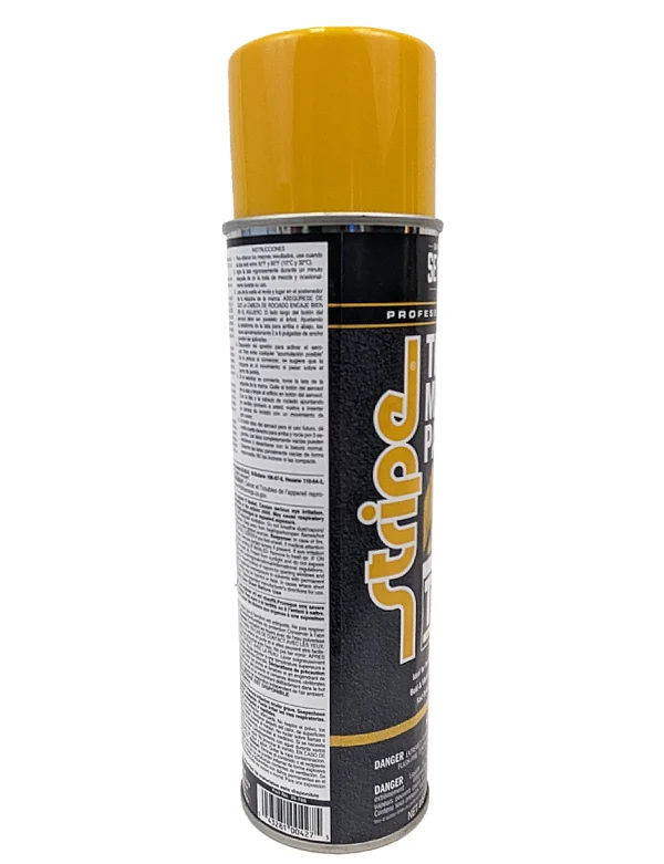 A long lasting, solvent based, traffic marking paint specifically formulated for line striping over freshly coated asphalt. Fresh sealcoat will not 'bleed-thru' this paint unlike other striping paints. Approximately 250 linear feet per can (4" wide stripe). The spray head is universal "T" Type Inverted Nozzle for striping machines.